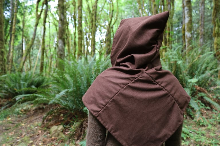 100% wool, hand sewn hood. The wool is a light, non-scratchy textile. Measurements: