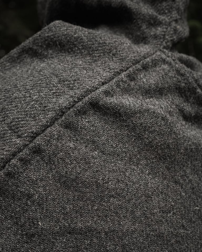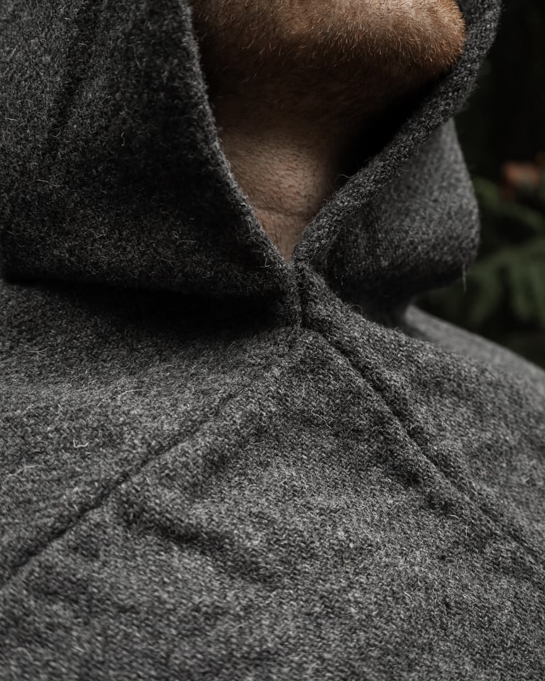This hood is 100% handsewn and made from wool twill fabric. The design is based off early medieval finds and can be styled for reenactment or everyday wear!